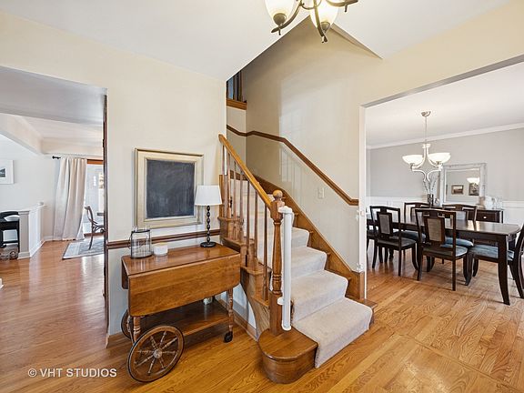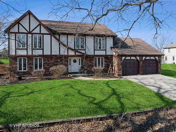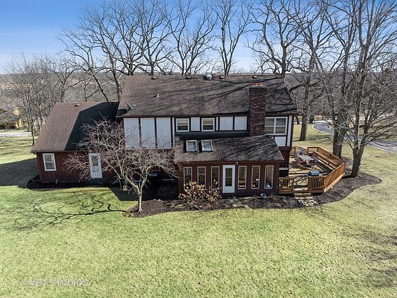 Discover this wonderful home featuring newly updated/remodeled baths, stunning hardwood floors, elegant crown molding, and a family room with a massive stone fireplace flowing seamlessly from the sunlit granite kitchen. The home includes four spacious upper-level bedrooms, highlighted by a magnificent primary suite with a private bath and a walk-in closet. Additionally, a 5-bedroom on the main level is perfect as a home office or guest quarters, complete with a closet and an adjacent full bath. Enjoy the inviting 3-season room that overlooks the expansive backyard and a wrap-around deck. This property is located in low tax Cook County and set on a delightful one-plus acre private lot offers fabulous panoramic year round views. The home also boasts a full basement, an oversized 2 1/2 car garage, and so much more to see. Call today for a private tour.
