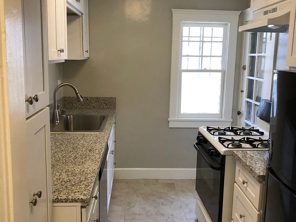 Kitchen appliances include stove, refrigerator, garbage disposal, dishwasher