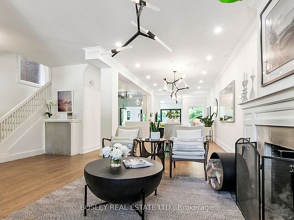 Nestled in the heart of North Rosedale on one of Toronto's most iconic streets, stunning detached 4+1 bedroom, 4 bath home on a 28.5 x 128.5 ft lot is the perfect blend of sophisticated design and family friendly comfort. Thoughtfully reimagined by the current owners, the home offers exceptional flow, abundant natural light, and flexible living spaces for modern families. Main floor is a showstopper, w floor to ceiling west facing sliding door that lead to the backyard and bathes the open concept living/dining areas in sunlight throughout the day. Gorgeous hardwood floors run throughout, complementing the elegant wood-burning fireplace and the beautifully updated eat-in kitchen featuring stainless steel appliances, a breakfast bar, and exceptional storage. Perfect for entertaining, open concept dining area easily accommodates holiday gatherings or casual family dinners, while the adjacent formal living room creates a cozy and refined atmosphere. Second floor offers a primary retreat with a 5-piece ensuite, walk-in closet, and additional built-in storage. Across the hall, a second spacious bedroom with built-in storage and a home office nook is then next door to a welcoming family room, complete with a second wood-burning fireplace. The family room could easily be converted into a fifth bedroom if desired. Third floor features two more light filled, generously sized bedrooms with built-in closets that share a beautifully renovated 4-piece bathroom. Laundry area completes this upper level, adding to the homes exceptional functionality. Lower level is home to an entertainment room, ample storage and a potential bedroom. Complimented by the side entrance to the home, this space offers an ideal setup for a nanny suite or guest room. Outside, the fully fenced in private west-facing backyard features a sun soaked deck complimented by a seasonal tree canopy and an integrated stonework below. The backyard also provides convenient access to a spacious one-car garage.