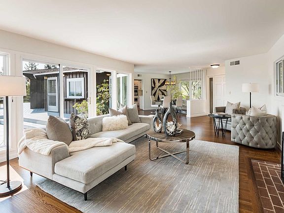 Peaceful Hilltop Home With Stunning Views. Nestled in Woodside Hills, this beautiful 3 bedroom, 2 bath home of 2,220 square feet (per county) rests on an expansive lot of 1.04 acres (per county) and overlooks the Bay Area. Enter into the lovely living room thats graced with walls of sun-lit windows and direct access to the wooden deck outdoors, which is great for entertaining and relaxing on warm summer days. The storage-filled kitchen and family room rest to the right, while two bedrooms and the master suite branch off to the left. The magnificent lot size of over an acre holds an incredible opportunity for those looking to expand or rebuild in this prestigious area. Socialize with friends and neighbors at the local Woodside Garden and Social Club, venture over to popular Woodside Plaza, or explore wonderful hiking and biking trails around the area. Despite creating a private and secluded getaway feel, youll only be a short drive away from both downtown Redwood City and Menlo Park.