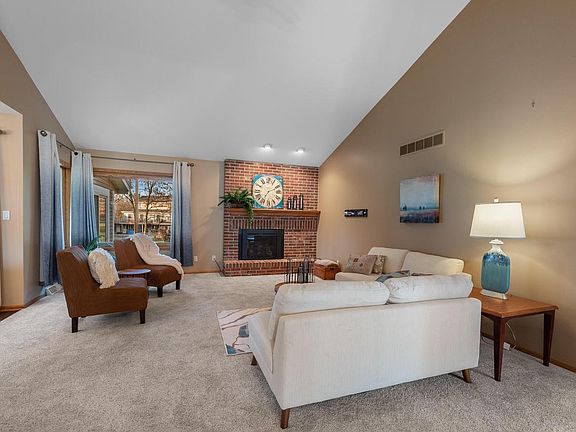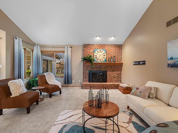 Beautifully maintained 2BR + den, 2BA condo combining comfort, style & functionality! Spacious open layout with vaulted ceilings, large windows and gas fireplace. Gourmet kitchen features high-end appliances, built-in Danby wine fridge & plenty of counter space. Primary suite offers remodeled bath & walk-in closet. Den ideal for office or 3rd BR. Sunroom overlooks private green space. Main-floor laundry, epoxy garage floor & partially finished LL perfect for rec room or storage. Pets permitted. Move-in ready!