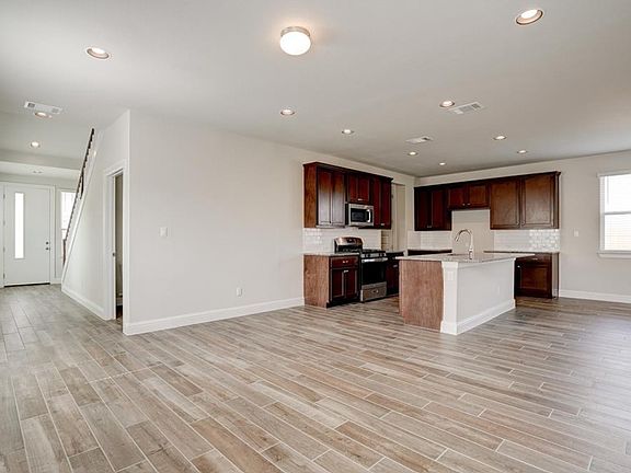 Plush carpetBright open-concept floor planRecessed lightingStainless steel appliancesWood-grain luxury flooringVersatile living spacesModern designer finishes