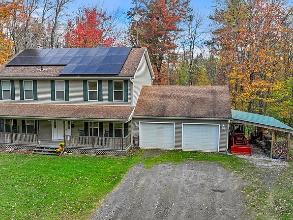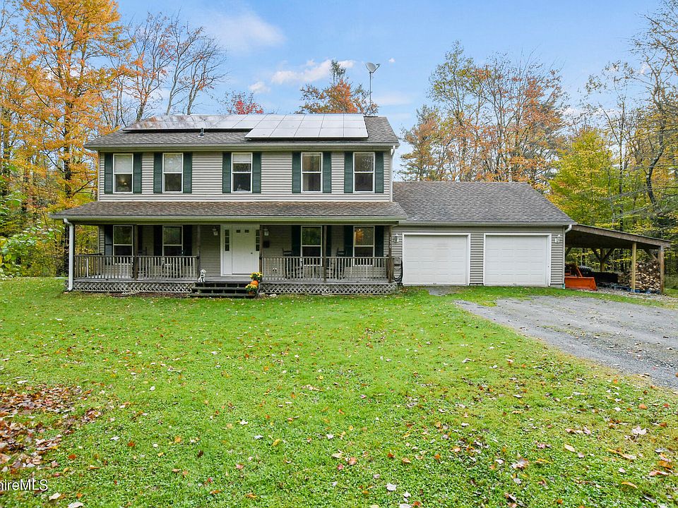 Discover your dream home in Windsor, set on over 5 acres of serene landscape! This charming colonial has it all, nestled in a private & efficient setting, this home is ready for its next owners. Inside, enjoy freshly painted rooms, beautiful red birch hard wood floors & high efficiency wood stove. Benefit from owned solar panels and a home generator for added efficiency & peace of mind. Enjoy the cozy front porch & large 66' back deck overlooking your private backyard. The home features a family room, living room, formal dining, a newly updated bathroom with quartzite vanity, multiple heating zones, and a spacious walkout basement, perfect for future expansion. The primary bedroom currently is opened up to expand into the original fourth bedroom, with a current layout perfect for a home office, gym, nursery, etc. Primary bedroom also offers a spacious walk in closet & large bathroom with soaker tub & private backyard views. The second floor also features convenient washer & dryer in the hallway. The septic system has a passing title 5 report, and the property has been meticulously maintained by its original owners.
