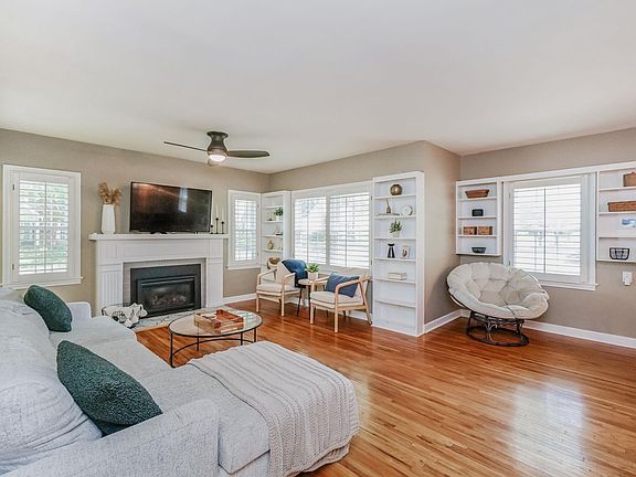 Character abounds in this adorable 4 bed, 3 bath, 1.5 story home! As you walk through the front door you'll notice the nicely finished original wood floors and large living room with a gas fireplace and awesome built-in shelves. The main floor windows were upgraded with plantation shutters giving it a warm and classy feel. The living area is open to a large dining space just off the kitchen. Walk into the kitchen and you'll find new flooring, updated tile backsplash, stainless steel appliances, and a unique open counter-top to the 3 seasons room - a great space to relax in the sunlight, grab food & drinks from the kitchen bar, and easily access the side yard. On the other side of the main floor are 2 bedrooms and a full bath. One is very spacious and the other has a sliding door to the back deck. The deck sits adjacent to the detached double garage and offers a tremendous entertaining area complete with a hot tub and a built-in pergola. Upstairs is a private master suite featuring hardwood floors, built-in closets, built-in shelving, a large bonus room/walk-in closet and an attached bath with a tiled shower. The basement access is off the kitchen and you'll find a nice family room, 4th bedroom and laundry/bathroom. Extra features, cute finishes and great spaces make this one a must see!