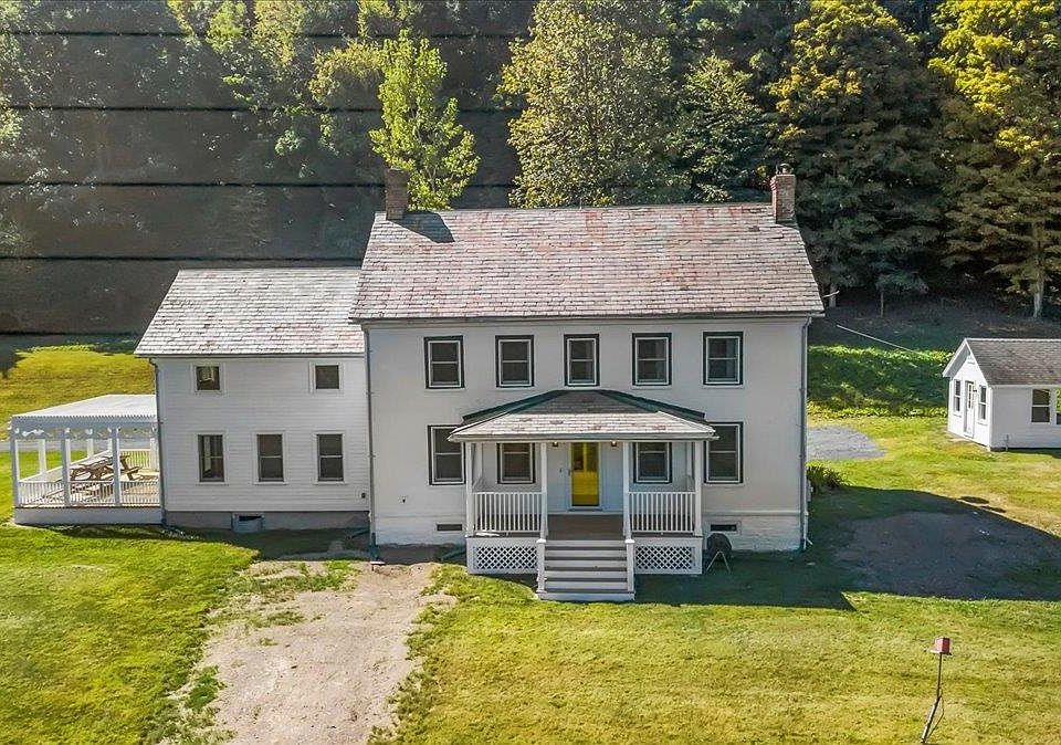 Tucked away on a private road, this stunning brick colonial offers over 30 acres of peaceful Vermont countryside-yet is less than 2 miles from the Village of North Bennington and Bennington College. A classic barn and separate studio provide endless possibilities for hobbies, storage, or creative space. The main level features a spacious living room with a fireplace, warm pine floors, and plenty of room for a dining area. The kitchen is a cook’s dream with cherry cabinets, a gas range, and a large island, plus a slider that opens to a pergola for outdoor dining and relaxation. A private office and half bath complete the first floor. Upstairs, beautiful pine floors continue throughout. The primary suite offers comfort and style, joined by two additional bedrooms and a full bath. From nearly every window, take in sweeping views of the surrounding landscape. A truly special property combining timeless charm with acreage, views, and versatile outbuildings-while still being just minutes from village conveniences and cultural amenities.