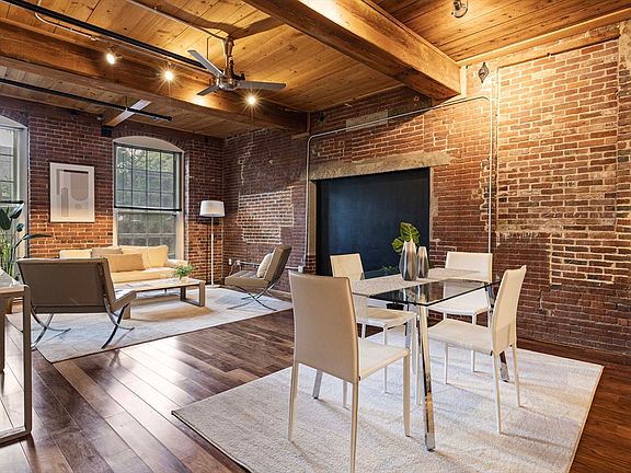 Experience the charm of this waterfront loft, featuring an open-concept living area with original wood beam ceilings, exposed brick walls, and expansive windows. The loft includes a versatile den space, perfect for a home office or guest room. The kitchen offers ample storage, quartz counters, gas cooking with a vented hood, and more. This residence, located in the historic Boott Mill Lofts, is part of the Lowell National Historic Park and is just a few steps away from the vibrant Canalway Cultural District. Boott Mill Lofts combine luxury living with the mill's historic charm. Residents enjoy a variety of amenities, including a roof deck, patio, fitness center, game room, and more. Garage parking is available for lease. Outside, the Canal-Way Cultural District invites you to explore streets adorned with Victorian-style streetlights and a community rich in cultural events and activities.