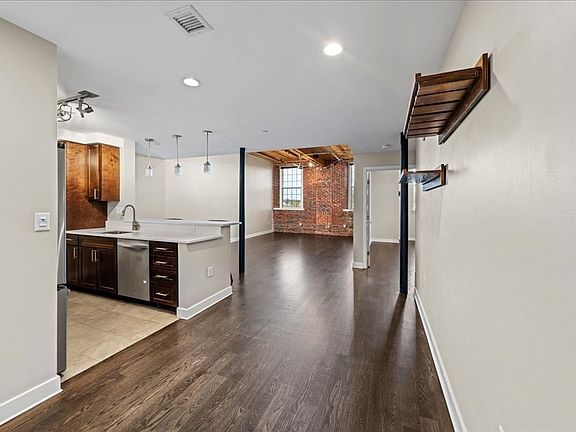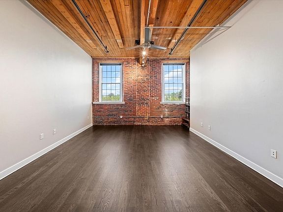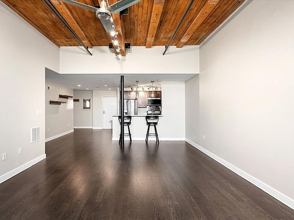 Step inside this character filled one bedroom loft and experience the perfect blend of historic charm and modern convenience. Soaring wood-beamed ceilings and original exposed brick walls create a warm, industrial vibe the moment you walk through the door. Natural light pours in through oversized mill-style windows, illuminating the gleaming hardwood floors that stretch across the open living and dining area. The sleek, updated kitchen features quartz countertops, stainless steel appliances, and a spacious peninsula ideal for casual dining or entertaining. Tucked off the main living space is a generously sized bedroom with tall ceilings and ample storage. The updated full bath is modern and clean, with stylish finishes. Residents are treated to a wealth of amenities including a rooftop deck, patio, fitness center, and business space, perfect for work, wellness, and relaxation. A true gem for those who appreciate style and convenience.