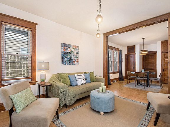 Located in the sought-after Riverside Park area, this bungalow features an open floor plan and original woodwork that highlights its craftsmanship. The kitchen includes newer butcher block countertops, range, and classic subway tile backsplash. The updated bathroom boasts a stamped tin ceiling and a vintage clawfoot tub. Start your day with coffee on the cozy three-season front porch or unwind in the evening on the back deck. The one-stall garage adds convenience, and the home's prime location—just a block from Riverside Park, Briggs Park Pool, and a short distance to the Creston business district—puts shops, dining, and entertainment right at your fingertips. An offer has been received. Seller has requested an offer deadline 1-31-25 at noon.