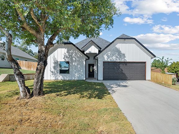 Nestled within the picturesque Riverfront community of The Rio Brazos, this beautiful 3-bedroom, 2-bath home offers 1,840 sq. ft. of comfortable living within a sought-after riverfront community. Inside, the home features a thoughtfully designed split-bedroom floor plan. A spacious dining area flows seamlessly into the open-concept living room with clear sightlines to the kitchen and dining, creating a welcoming atmosphere for gatherings. The large 7 ft island lends perfectly for entertaining or large gatherings along with the spacious 5x7 walk in pantry. The soaring 55 inch upper cabinets will store everything you can dream. The private primary suite offers a true retreat with an ensuite bath complete with soaking tub and separate shower. The yard is fully fenced and comes with inground sprinkler system. Just 15 minutes from both Weatherford and Granbury, you’ll appreciate the perfect blend of peaceful riverfront living with convenient access to shopping, dining, and entertainment. The Rio Brazos community provides direct access to the Brazos River, where you can enjoy boating, fishing, skiing, kayaking, or cruise straight into Lake Granbury for an evening of waterfront dining. Residents also enjoy a community pool, playground, fishing pier, and clubhouse—perfect for year-round recreation. Whether it’s relaxation on the water, active recreation, or a place to gather with friends and family, this home and community have it all.