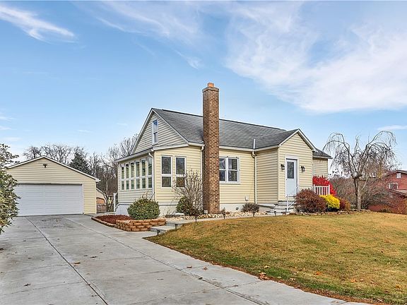 Welcome home to this beautifully updated 3-bedroom, 2-bath Cape in the desirable Central Valley School District. You'll enjoy an unbeatable location, just minutes from I-376 for a quick trip to the airport and downtown. Step inside through the warm and welcoming sunroom, the perfect spot for your morning coffee. Prepare to fall in love with the spacious kitchen, featuring elegant quartz countertops, a subway tile backsplash, and sleek stainless steel appliances. The large family room is bathed in natural light streaming through ample windows, highlighting the engineered wood floors that flow seamlessly across both levels. The main floor offers two generous bedrooms and a full bath boasting a stunning tile shower. Find your private retreat upstairs in the huge, secluded third bedroom. The lower level adds convenience with a second full bath, complete with a charming vessel tub. Outside, a wide driveway leads to a 2-car detached garage.