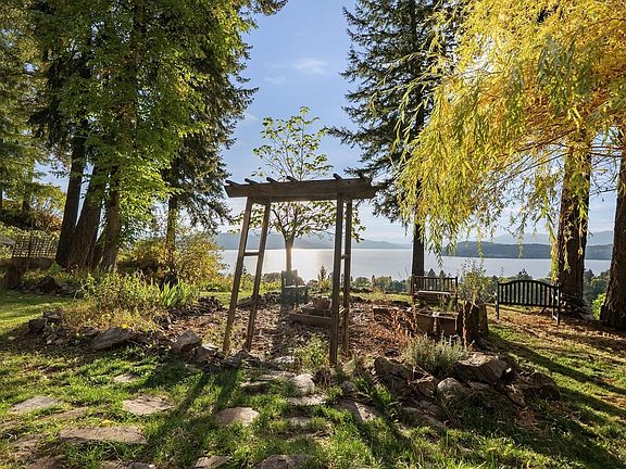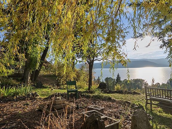 Perched on a stunning mountainside overlooking the seemingly endless, sparkling waters of Lake Pend Oreille, this distinctive retreat blends naturally into its surroundings—yet sits only 15 minutes from downtown Sandpoint. The benched property offers two levels: the lower with the main home, guesthouse, greenhouse, and organic gardens; the upper with two dry cabins and an RV hook-up. The Earthship-inspired main home is constructed with a mix of locally sourced natural materials and creative recycled elements, creating an efficient and comfortable living space that blends with its surroundings. With multiple structures, flexible living areas, and spectacular lake and mountain scenery, this property is suited for full-time living, a private retreat, or a multi-use getaway. Discover the good life here! The Sandpoint area is celebrated for its beauty, vibrant arts and culture scene, and exceptional four-season recreation—from skiing, golf, and mountain trails to abundant water sports.