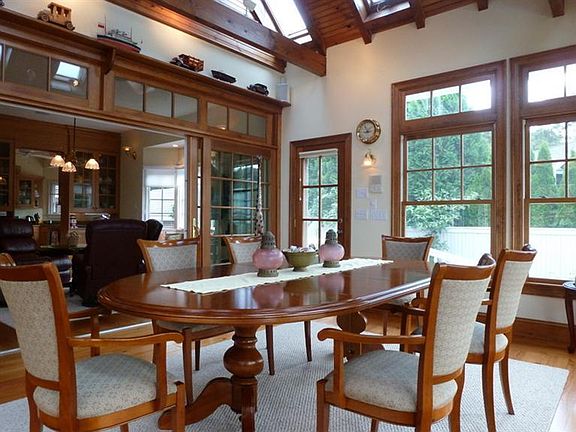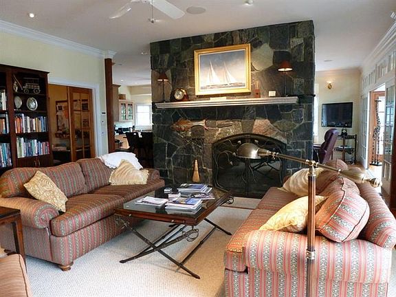 Exquisite waterfront home on a picturesque cove in Cataumet takes in the beautiful views & sunsets and offers bridge free access out to Buzzards Bay. A very unique architect designed home, this 5 bedroom year round residence with beautiful views, is in mint condition & features antique wood floors throughout, fine built in cabinetry, 3 wood fireplaces faced with granite & beach stones ,4 gas fireplaces, 10'ceilings, ceiling fans, 5 zone heat, central AC, whole house generator, intercom & stereo, alarm, irrigation, hot tub, sauna, 2 outdoor showers, a heated garage, an outbuilding & even a basketball court. Lots of wonderful spaces for your family & friends to gather together,& laugh, play, work,or find solace. Explore the cove & sandy island beaches closeby ,enjoy boating, kayaking, fishing,birding & shellfishing right outside your door!