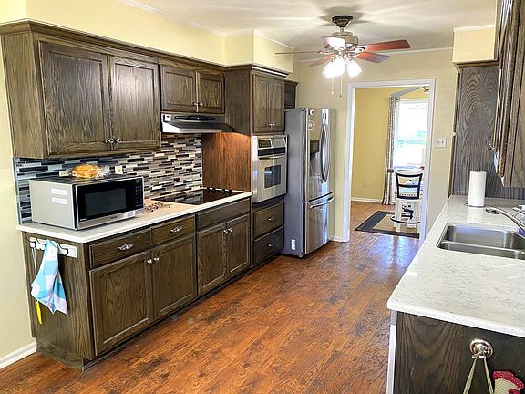 Great 3 BED/2 BATH home located just 4 homes away from the popular Elm Creek Walking Park and close to schools, shopping and restaurants. Immaculate home, roof replaced in 2020. Split bedroom design w/beautiful baths. Three living areas - living room with rock fireplace (currently with electric insert), spacious den that adjoins LR, is open to lovely kitchen & overlooks pretty backyard, (full sprinkler system) and covered/screened patio, large hobby/craft room or office (would make great room for home schooling or quilting). Small workshop/yard shed has nice storage. Lots of built-ins and storage throughout home.
