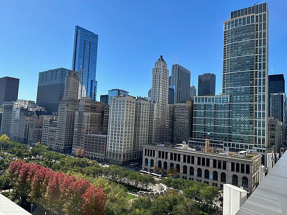 Discover urban elegance in this highly upgraded 3BR/3BA residence on the 41st floor of the Heritage, perfectly positioned on Chicago's Cultural Mile for downsizers and second home buyers seeking proximity to theater, Millennium Park, Lake Michigan, and the Museum Campus. Breathtaking North/East/West corner views of the city skyline, lake, and park unfold through floor-to-ceiling windows, amplifying the 2157 sq ft layout. Custom motorized shades, cove lighting, and bespoke cabinetry elevate the sophisticated interiors. The open kitchen, dining, and living areas feature upgraded hardwood flooring, abundant counter space, a breakfast bar, and access to a spacious recessed balcony-ideal for relaxing or entertaining. The primary suite boasts a Jacuzzi bath, separate shower, walk-in closet, and custom Abitare cabinetry. A dedicated laundry room (not a closet), guest suite, and third bedroom/home office with tailored desk and shelving add practicality and charm. Enjoy Crestron-controlled Lutron lighting and Boston Acoustics surround sound for effortless ambiance. Building amenities include an indoor pool, hot tub, saunas, fitness center, community rooms & co-working space, dog run, 24/7 door staff, and direct pedway access to rail transit for seamless O'Hare connections. Steps from world-class theater, Symphony Center, Art Institute, Museum Campus, and lakefront trails, this home offers vibrant city living with the serenity of a well-appointed retreat. Stroll to Millennium Park's Lurie Gardens, sail from Monroe Harbor, or dine along the Magnificent Mile-all just outside your door.