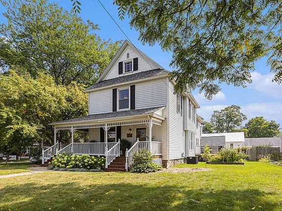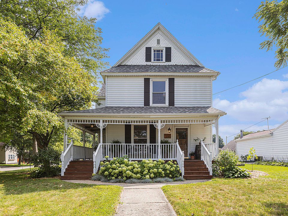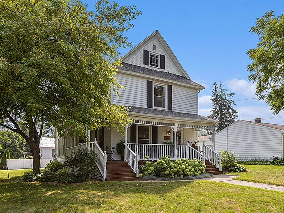 Welcome to 130 N Lake in Caledonia! A beautiful wrap around porch with new decking is perfect for fall evenings. The interior boasts 9 foot ceilings, 2300 feet of finished living space, and large windows for ample natural light. Two staircases lead to the upstairs, which contains 3 bedrooms and a large flex space (previously the 4th bedroom). The roof on the house and garage are both new. The garage contains 220 service. Downtown Caledonia and Lakeside Park are just steps away. Possession is at close!
