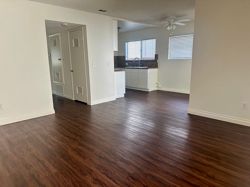 **2+2 in Downtown Brea** GROUND UNIT MOVE IN MID JULY Completely remodeled throughout Granite countertops in Kitchen and bathrooms 2 Private Balconies off front and back of unit Central Heating and A/C 1 parking space in large shared 2 car garage 1 assigned parking space Laundry facilities on premises Month to month lease Major Walk-ability to all Downtown Brea, Restaurants, Coffee Shops, Movie Theater and other entertainment including the Brea Improv and UFC Gym! Best place to live in Brea! Paid water and trash Small pets welcome Photos are not of actual unit $50 credit check fee per application Month to month lease, absolutely no smoking allowed. Owner pays for water and trash