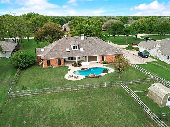 Only 15 miles to downtown Dallas, this custom built, meticulously maintained and updated home with sparkling pool is located on a 2.42 acre highly desired lot near great schools. Seller is a custom home builder and the only owner. Attention to detail is obvious the moment you enter. Tall ceilings accented with beautiful crown molding, double sided fireplace from office to living, built in cabinets in multiple areas of house, another fireplace in 2nd living room upstairs, hardwood floors, updated lighting and fixtures. Covered patio with skylights overlooking the incredible pool and beautiful land with a 26x37 workshop with water and electric, and a 20x40 barn. This is a great home you don't want to miss!