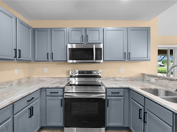 Freshly remodled home in gorgeous and growing NW Cape Coral!! This house has brand new kitchen tops, tile floors throughout, stainless appliances, and a huge fenced in back yard! New roof in 2022. This house is in a great neighborhood with new construction all around. This is also very near the Pine Island Corridor close to shopping, restuarants, bars and entertainment. Beautiful Matlacha being nearby is a great place to escape on the weekends for some shopping and great food. The Burnt Store boat ramp is also a quick trip as well as multiple locations to play pickleball. The floorplan is amazing and the three bedroom with den for a home office make this a great plan for almost anyone!