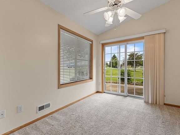 Come see this highly sought after end unit featuring zero-entry access, a spacious two car garage, and a private patio - perfect for enjoying a quiet moment in your maintenance-free lifestyle. With snow removal and lawn care included through a well-managed association, you'll have more time to relax and enjoy your surroundings. Tucked away at the back of the complex on a peaceful dead-end street, this home offers privacy with beautiful green space and mature trees, all while being just moments from the convenience of Ankeny Blvd's shops, dining, and amenities. Inside, the home has been lovingly maintained and thoughtfully updated. The spacious family room flows into the dining area, while a bright sunroom with abundant natural light opens directly to the patio, ideal for both everyday living and entertaining. The kitchen is updated with quartz countertops, a tile backsplash, a composite sink, matching appliances, and built-in pull-out shelving that adds both functionality and style. A separate laundry area with a utility sink adds even more convenience. The primary suite is a true retreat, offering vaulted ceilings, walk-in closet, and an updated en-suite bath with quartz countertops, dual sinks and a walk-in shower. Additional recent upgrades include a modern electric fireplace, new HVAC system installed in 2021, and a tankless water heater added in 2022. This home is a perfect blend of comfort, convenience, and quality. FRESH PAINT 8-28-25