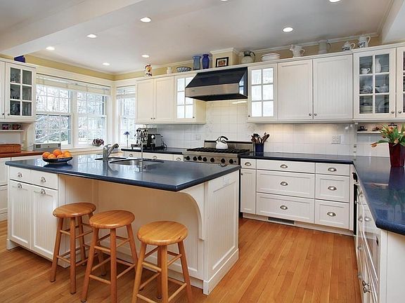 - Kit Dscrp: Dining Area, Flooring - Hardwood, Countertops - Stone/Granite/Solid, Cabinets - Upgraded, Breakfast Bar / Nook, Closet/Cabinets - Custom Built, Kitchen Island, Stainless Steel Appliances, Recessed Lighting, Remodeled, Window(s) - Bay/Bow/Box, Exterior Access, Country Kitchen, Cable Hookup, Gas Stove
