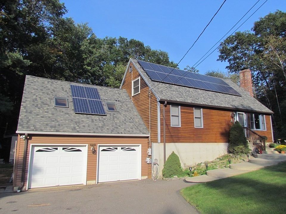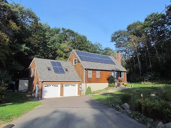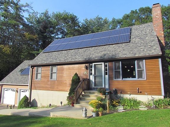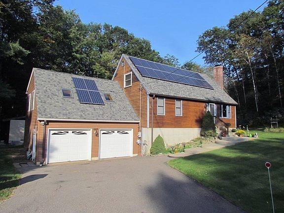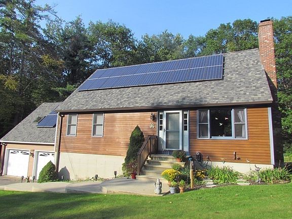 Beautiful contemporary cape w/an amazing newer Great Room over a 2-car attached (heated) garage. Located on over 2 sprawling acres w/a lovely, private backyard on a spacious corner lot. The 40 year architectural shingle roof & solar panels are only 5 years young. There is a shed & a wood shed (w/over $1,500.00 worth of wood), as well as a snow blower, all appliances (including the washer & dryer) & the woodstove in the basement to convey. Hybrid electric hot water heater w/heat pump installed in 2022. Cedar clapboard siding. Solid wood doors, windows & wood work. Living Room w/cozy wood burning fireplace, vaulted ceiling, ceiling fan & rounded window. Kitchen w/ track lighting & sliders to a lovely back deck. Second floor Master Bedroom suite w/vaulted ceiling, skylight, double closet & ceiling fan. The Great Room has a vaulted ceiling, 2 skylights, & mini split AC system. Generator hookup to run the whole house! Only minutes to Westminster Center & the major routes. Title V approved!