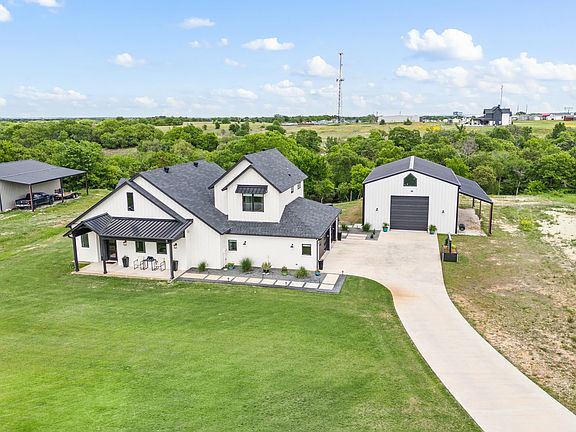 SEARCH YOUTUBE FOR A VIDEO! Welcome to this stunner of a home built in 2020 in the Estates of Bison Creek sitting on 7.354 of HUNTABLE acreage! 6.354 acres are AG EXEMPT so taxes are cheap! NO HOA! 2 Wells! 2 Propane Systems! Water Softener! 2 Fireplaces! POOL & HOTTUB says WOW! This home offers the perfect blend of modern comfort & countryside charm featuring 3 bedrooms, 2.5 baths, oversized 3-car garage & parking for at least 6 more vehicles in the 40'x50' INSULATED shop! The shop features 220V elec, two 12'x12' roll up doors & a 10'x50' lean-to for addtl storage! A deer blind is right behind the shop on the ridge for hunting! Take a stroll down the hillside to relax by the seasonal creek! Use the back pasture area for WHATEVER YOU WANT! Inside this CUSTOM HOME, you are greeted w-wood beamed vaulted ceilings, multiple accent walls, custom light fixtures, custom sliding barn doors, marble & wood countertops, undercabinet lighting...the upgrade list goes on & on! The kitchen boasts a waterfall island with a stainless-steel farm sink, breakfast bar area great for entertaining, custom backsplash, LOADS of cabinetry & stainless-steel appliances! It also features an AMAZING walk-in pantry! The HUGE family room is open to the kitchen & features a private office area & a dry bar w-undercounter fridge! The downstairs owner's suite features 10' ceilings, custom accent wall, a private door to your pool-patio area and a spa-like ensuite featuring a 6' soaker tub, dual entry shower (w-dual shower heads) & a HUGE owner's closet with DIRECT access to the laundry room! The laundry room boasts marble counters, sink, upper and lower cabinetry & undercounter lighting! Upstairs is 2 bedrooms where one is currently set up as an open art studio-office area. The seller designed this space to be EASILY converted into a 3rd bedroom. Seller will add a wall & choice of single or double door to enclose the space if desired. COVERED 6'x25' Front Patio & COVERED 14'x19' Rear Patio w-Fireplace!