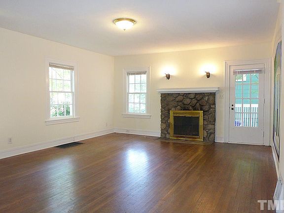Short walk to Franklin St., UNC. Living room has hardwood floors, fireplace. Country kitchen, appliances included, with pass through to dining or family room. 2 bedrooms and den (could be used as a bedroom (no closet)) on 1st, 2 bedrooms up all with hardwoods. Full bathroom on each level. Updated bathrooms. Washer & dryer included. Pet w/fee & prior approval. $15/mo filter fee.