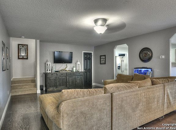 Pride of home-ownership shines in this stunning home! Several added features include, stained concrete floors, and wood laminate flooring on first floor, custom painted cabinetry in kitchen, stained concrete walk way, upgraded AC with added intake and filter at first floor for comfort, and more. Excellent location within 15 min. of Lackland AFB, close to shopping and desirable Northside schools! *Seller Providing 1 Year Home Protection Plan for Buyer!