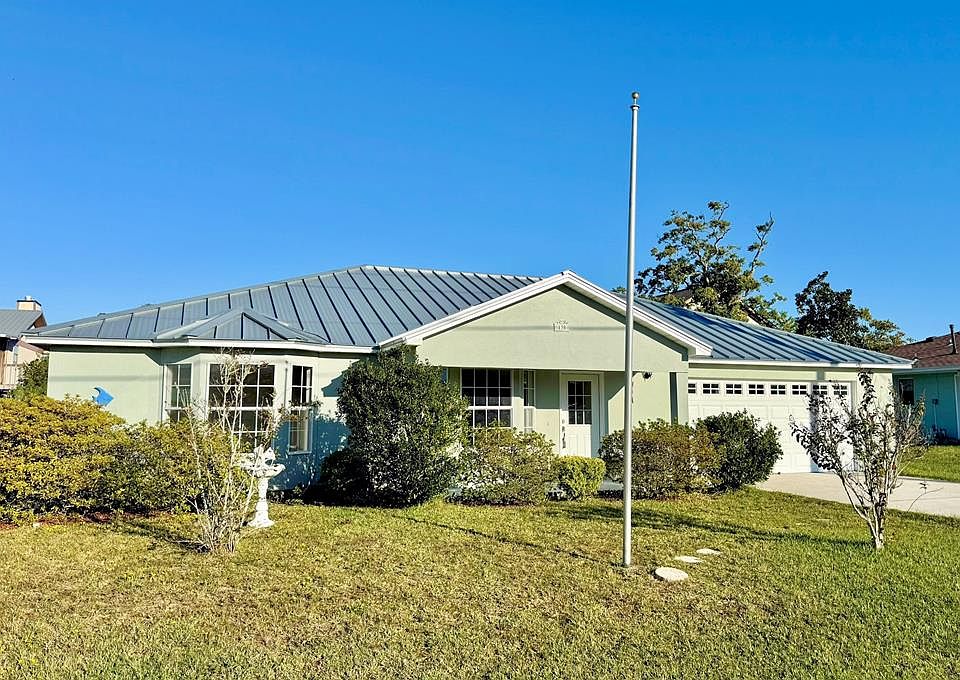 Located just a short golf cart ride to the beach, this beautifully updated three-bedroom, two-and-a-half-bath home offers the perfect blend of style, comfort, and coastal convenience. Step inside to find luxury vinyl plank flooring throughout, creating a seamless flow from room to room. The spacious living and dining areas are ideal for entertaining, while the eat-in kitchen features abundant cabinetry and brand-new quartz countertops, making it both functional and elegant. The master suite offers a custom tile shower, walk-in closet, and private access to the sunroom, a relaxing retreat filled with natural light. A guest bedroom with its own private bath ensures comfort for family or visitors. Additional highlights include a laundry room, garage, and screened porch for enjoying coastal breezes. The inviting sunroom, complete with a gas fireplace, provides a cozy spot to unwind year-round. Completely updated and move-in ready, this charming home delivers easy coastal living just minutes from the sand and surf.