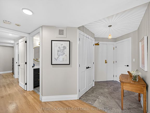 Urban Living in the Golden Triangle! Outstanding location, overlooking the Rideau Canal. Move right into this amazingly large, sun filled condominium has undergone a complete renovation, no detail was overlooked. Immaculate and stylish, this unit is a stunner! Low rise building, designed by Barry Hobin and rarely for sale. Offering a perfect setting for both the discerning urban professional or those seeking the joys of retirement living. Approx. 1500 sq. ft, designed to embrace the surrounding beauty with an array of windows spanning south, and west, ensuring a constant infusion of natural light throughout the day. The flowing layout balances formal and casual living, from the fireplace warmed, living-dining room to the spacious, stylish and beautifully renovated kitchen. The kitchen design cleverly incorporates a quartz topped island, perfect for hosting/entertaining storage/counter and cooking space. The spacious principal suite has a full ensuite, featuring heated floors and walk in shower with lovely glass doors. Large walk-in closet offers amazing storage with full wall of built-in shelving and another full wall of hanging options. A spacious additional bedroom/den, perfect for guests and a renovated full bath, heated floors, complete the wing. In unit laundry with additional storage. A rare combination of great space, natural light and a prime location this home offers the best of Ottawa's urban lifestyle. This is the complete package - with large bedroom suites + 2 stylishly renovated bathrooms, hardwood floors, fireplace, 3 terraces, 1 underground parking & storage locker. With a Bike Score of 99 and Walk Score of 98 (Walker's Paradise), this residence defines convenience and lifestyle. Steps from the Rideau Canal, Elgin Street restaurants and cafés, Farm Boy, the NAC, and Parliament Hill, everything you need is at your doorstep including the LRT and footbridge to the University of Ottawa. Move in ready, immaculate, an exceptional space! 24 hours irr
