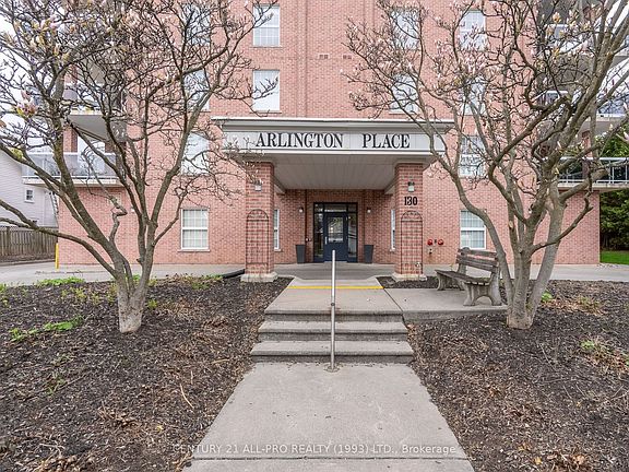 Welcome to 130 Queen Street known as Arlington Place. Super location and is a short walk to Lake Ontario and Downtown Cobourg. Great neighbourhood and surrounded by well cared for properties. 2 bedroom condo that shows pride of ownership. This condo has a total facelift and shows beautifully. Open concept kitchen, dining room and living room with attractive fireplace and walkout to a 12x12 balcony facing North/East. 2 bedrooms, 2 full baths were updated. Primary bedroom offers a walk in closet with 3 pc ensuite and another walkout to 12x12 balcony. Offers a stacking washer/dryer combined with utility area. Grounds are well landscaped and maintained. Has an assigned outdoor parking spot and has a storage locker. Condo fees include water, building insurance and parking.