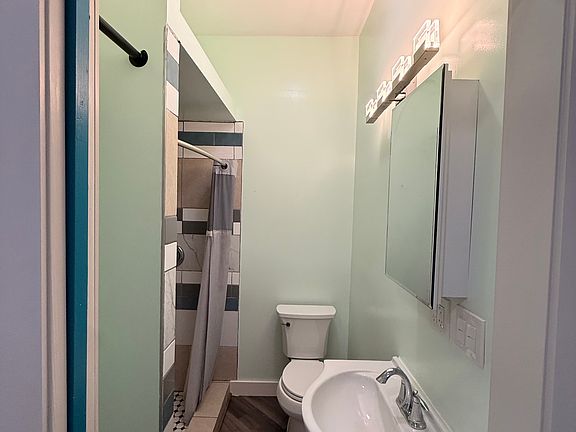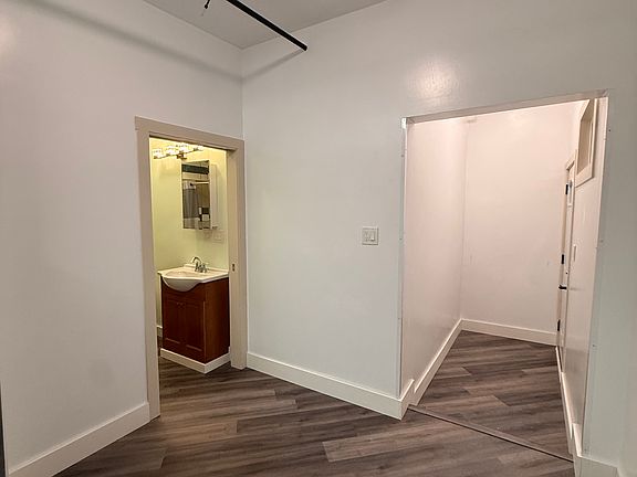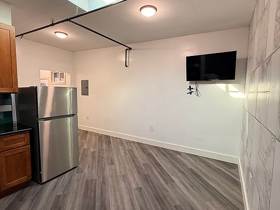 This is a studio with its own separate bathroom. Comes furnished with flat screen TV, murphy bed, gas stove, microwave, and refrigerator. Hardwood floors throughout the main space, granite countertops in kitchen and wooden cabinets and a wooden closet space.