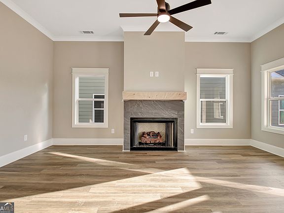 MOVE-IN READY Seavy Ranch Plan. Welcome to Chadwick Homes! Enjoy ranch style living! No need to build, when this beauty is move-in ready with a neutral palette and features you will love. All bedrooms on one level make this such a popular floorplan! Stainless appliances highlight the bright kitchen with prep island, desirable gas cooktop, and wall oven. Gathering room with fireplace as the focal point and open to kitchen. Dining/breakfast room with beautiful views out back. Primary suite offers a bath with tile shower, double vanity and walk in closet with built-in wood shelving. This plan is the only one that features a separate soaking tub in the primary bath. Quartz countertops throughout home. Spray foam attic and tankless water heater make this new construction home efficient, and upgraded with value. Three car garage. Covered back porch with beautiful views of a valley. Lawn maintenance included in HOA, with an optional pool membership. It even has a golf putting green! Enjoy all that downtown Senoia has to offer for shopping, restaurants, coffee shops, breweries, farmers market or strolling, just minutes away! Golf cart paths to Publix shopping center.