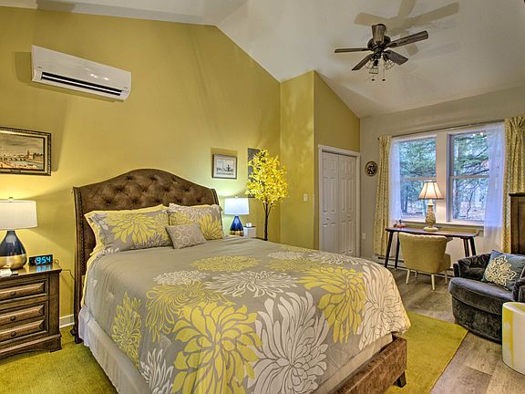 New, fully furnished, beautiful decor. Utilities & Wi-Fi included. Cathedral ceiling, fully equipped kitchen including microwave, stove, dishwasher, refrigerator, small appliances, cookware, utensils, washer, dryer.