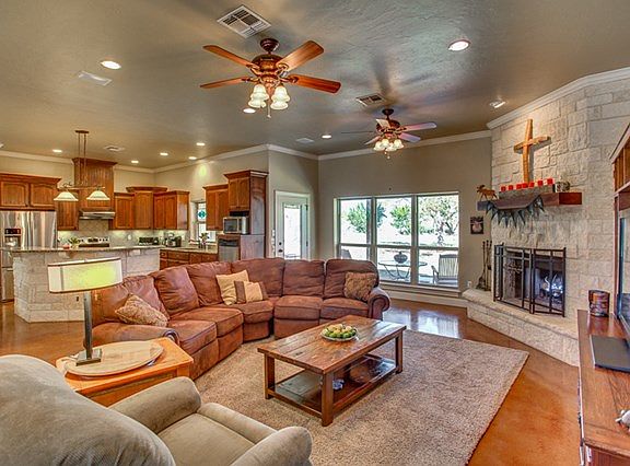 4 bdrm + office, 3 bath home on over an acre lot in Highlands Ranch subdivision. Open floor plan with wood-burning fireplace, separate formal dining room, center island kitchen with granite countertops, stainless appliances & Alder cabinets. Stunning stained concrete floors with carpets in bedrooms. Covered back porch overlooks large, fenced yard. Split bedroom floor plan with master bdrm, office and 2 guest bedrooms with full bath on main level. 4th bedroom on 2nd level with private bath, could be used for media or playroom with climate controlled storage closets on both sides. Energy efficient home with 2 x 6 exterior walls , R-33 insulation in attic & Nest wifi thermostat. See list of details.