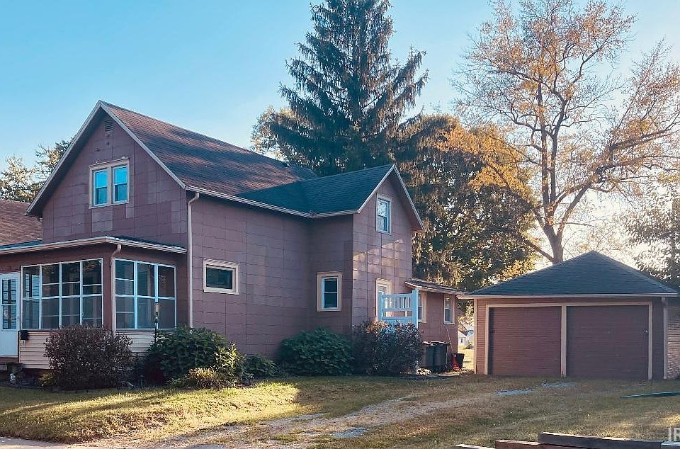 OPEN HOUSE SATURDAY, SEPTEMBER 27, 1-3 PM. This charming home features a cozy enclosed front porch, perfect for relaxing year round! Enjoy the spacious yard, ideal for outdoor activities or gardening, and a large garage plus an additional shed. Inside you'll find beautiful hardwood floors, an updated, roomy kitchen with plenty of space, an exposed brick chimney for added texture, and a downstairs room that can be a bedroom or office! All nestled on a quiet street not too far from downtown, parks, and walking trails. A perfect blend of comfort and convenience. All appliances, except freezer, stay. Don't miss this opportunity!