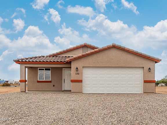 Desirable Hidden GEM! BRAND NEW 4 bed/2 bath home on 1+ acres with NO HOA! Serene private living and endless potential to create your own paradise. Enjoy 360° mountain views, breathtaking sunsets, and quick access to paved roads, & freeway. Plenty of space for toys, animals! RVs, gardens, or workshops—no restrictions here, giving you freedom to design the lifestyle you truly want. Inviting front porch opens to a bright layout with wood-look tile, neutral palette, vaulted ceilings, and abundant light throughout. Stunning kitchen includes gray shaker cabinets, quartz counters, SS appliances, pantry, and island with breakfast bar. Relax in the main suite with walk-in closet and private bath. Spacious lot offers room to grow. Come 'BUY' your new ranch today!