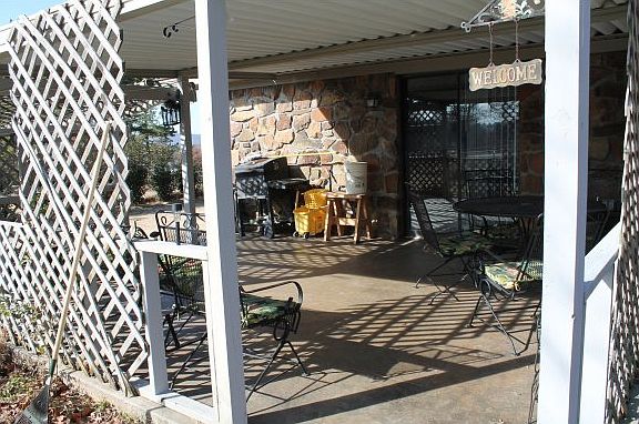 Well built 2BR/1BA features an open floor plan & large rooms. The window lined living room measures 15x28 & has a rock hearth & wood burning stove. Bedrooms measure approx. 13x14 & 10.5x17. The interior was recently spruced up with a fresh coat of paint throughout. Enjoy evenings on the covered back patio. Have room for extra guest & all your lake toys w/ the 24x36 shop w/ guest quarters. Home is being sold fully furnished w/ a few reserved items. Less than a mile from boat ramp on Lake Eufaula