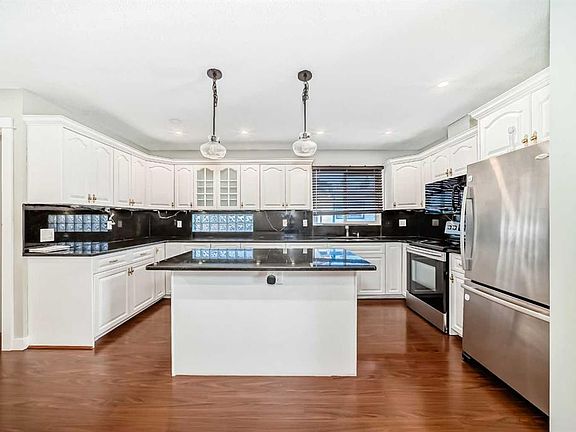 Welcome to this lovely 5-bedroom bungalow situated on a huge corner lot in the mature community of Braeside, offering charm, space, and a long list of updates including kitchen and countertops (2014), roof (2015), windows (2016), flooring (2017), basement bathroom (2018), light fixtures (2019), furnace (2020), and water tank (2020). The open-concept living and dining room features large south-facing windows, a beautiful two-sided wood-burning brick fireplace, and access to a bright kitchen with plenty of counter space and a separate entrance to the basement—ideal for extended family or potential legal secondary suite development, subject to approval and permitting by the City of Calgary. The primary bedroom includes a 2-piece ensuite, with two additional bedrooms and a 5-piece main bath completing the main floor. The fully finished basement offers a large family/games room with gas fireplace, two extra bedrooms, and another full bathroom with tub and shower. Outdoors, enjoy the fully fenced yard with a spacious concrete patio, raised garden boxes, and an oversized detached garage with extra parking. Perfectly located close to top-rated schools, daycare with before/after-school programs, shopping centres, Fish Creek Park, Glenmore Reservoir, Heritage Park, hospital, and LRT station—all within approximately 5 km—this well-maintained home is move-in ready and a rare find in one of Calgary’s most desirable southwest communities.