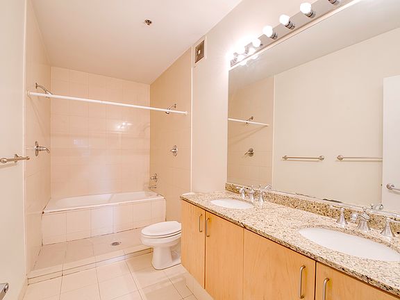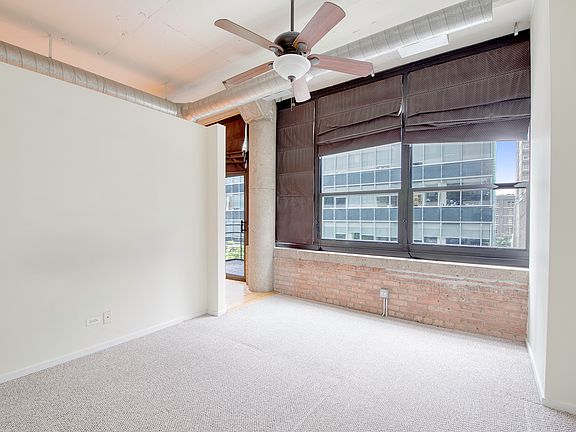 Beautiful 2bed/2bath condo in West Loop. Both bedrooms are fully enclosed. Unit features 11+ft ceilings, exposed brick wall, black-out window treatments and hardwood floors. Large island kitchen with stainless steel appliances. The primary bedroom is ensuite with huge bathroom (double sinks, enclosed double standing showers and soaking bath) and walk-in closet. Other features include a huge balcony, in-unit washer/dryer, fire place and updated light fixtures (all LED). Assigned indoor heated car garage parking spot included in rent. Full amenity building with a 24hr door person, exercise room, 2nd floor sundeck and a full time engineer on staff. Close to public transportation, expressways, restaurants and entertainment. This unit is move-in ready!