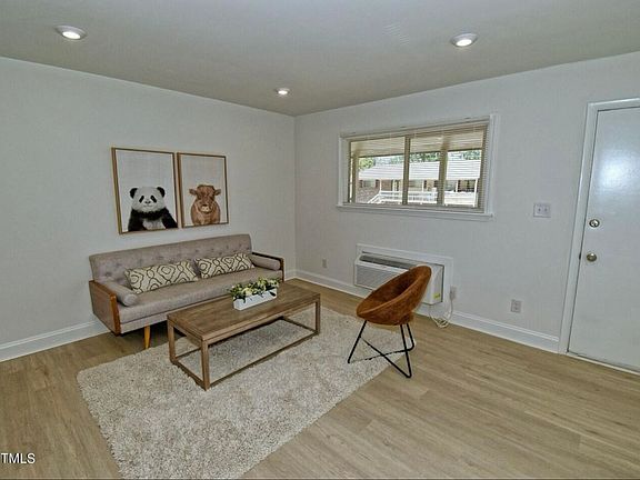 FULLY RENOVATED HIDDEN GEM! Updated, freshly painted 1 bedroom, 1 bathroom condo apartment in Chapel Hill across the street from University Place, walking distance to UNC, located on free bus line. Enjoy your own 700 sq. ft. retreat! Amenities included: hard luxury vinyl plank flooring throughout, updated kitchen with all stainless steel appliances, dishwasher, microwave, garbage disposal, updated bathroom, updated light fixtures, new washer/dryer, A/C, community pool, front balcony. Utilities included: water/sewer/trash. You pay electric and Internet. Pet friendly! This 2nd floor unit greatly mitigates flood zone damage risk, compared to similar units downstairs currently undergoing reconstruction. Date Available: Oct 6th 2025. $1,250/month rent for minimum 6-month lease. $1,250 security deposit required. Please apply through Zillow ($35 application fee). No previous evictions or criminal history. Showings available to qualified applicants by request. Unit is unfurnished; photos show staged furniture for scale.
