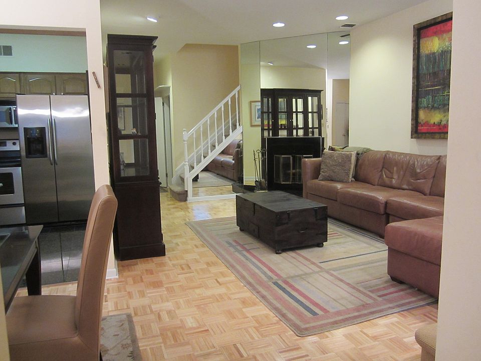 Atrium courtyard entry leads to fabulous duplex condo. Living room with fireplace, fabulous new designer kitchen with breakfast bar, granite tops and floor, new appliances, new parquet floors, spacious rooms, high hats, storage room, indoor garage. Close to RR.
