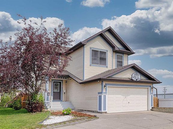 Nestled at the end of a quiet cul de sac in the highly sought after Morningside community of Airdrie, this stunning 5 bedroom, 3.5 bathroom home offers over 2,800 sq. ft. of fully developed living space, including a rare walk up basement with a separate entrance and breathtaking pond views. The main floor features brand new flooring, an open concept layout, and a cozy gas fireplace. The spacious kitchen is a chef’s dream with granite countertops, stainless steel appliances, and a walk through pantry. Large windows at the back of the home fill the space with natural light and showcase peaceful pond and trail views. Step out onto the deck to enjoy the tranquil surroundings and direct access to scenic walking and biking paths. Upstairs you will find five generous bedrooms, including a primary suite with a four piece ensuite and walk in closet. The fully finished basement adds even more living space with a bright rec room, flexible space, full bathroom, and walk up access to the backyard perfect for guests or extended family. Situated on a corner lot with no neighbors on one side, this home offers exceptional privacy. The fenced backyard opens onto a beautiful network of pathways ideal for walking, running, or cycling right from your back gate. An oversized driveway provides plenty of parking, and the quiet location is just minutes from schools, parks, and shopping. This move in ready home combines space, function, and an unbeatable location in Morningside, offering comfort and lifestyle for the whole family.
