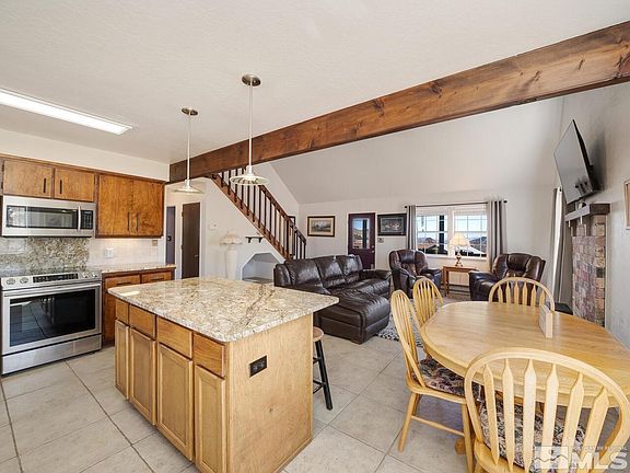 Experience the ultimate in tranquil living with this stunning 3-bedroom, 2.5-bathroom single family home, nestled against the sloping hills of Historic Virginia City! Enjoy breathtaking panoramic views that stretch for 100 miles, as you relax in peaceful, quiet surroundings. This immaculate 2-story residence boasts 1446 sq ft of clean, comfortable living space and features an open concept great room with high ceilings, ceramic tile flooring, and beautiful wood beam accents., Large windows invite natural light to flood the space, offering the perfect setting for quiet family evenings or entertaining friends. The light and bright kitchen and dining space feature lovely countertops, a pantry, an island with extra seating, and new appliances that include a built-in dishwasher, microwave, and flat surface range. The back door leads to the rear open-air deck with privacy fencing and a set of stairs that stretch to the upper portion of the yard. Back inside, a beautiful wood stair rail leads to the second story, where you'll find a generous master bedroom with a walk-in closet and an ensuite bathroom, complete with a shower/tub combo and convenient laundry setup. Relax on the covered front porch that overlooks the paver patio or enjoy the several seating areas scattered around the property. The expansive low-maintenance exterior, extra-large detached 4-car tandem garage/workshop, and greenhouse offer endless possibilities for your hobbies and interests. What’s more? There is no HOA , washer, dryer, stove, refrigerator, and greenhouse are included in the sale – a great cost savings. This stunning property is ready and waiting for a new owner to call it their own, so don’t miss out on an opportunity to see it while you still can – schedule your showing today!