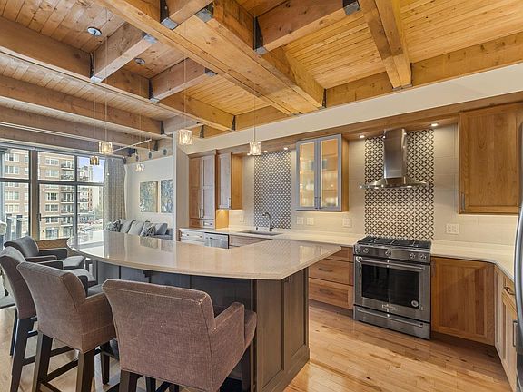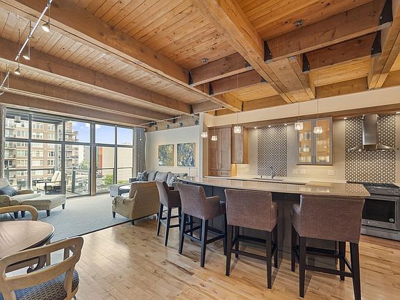 Meticulously maintained, beautifully updated 2BR + den, 2BA loft-style condo on the Milwaukee River. Exposed wood beam ceilings, HWFs, and a fully renovated kitchen with quartz counters, modern cabinetry, SS apps, stylish light fixtures, custom tile backsplash and added bar area w/mini fridge. Floor-to-ceiling windows in the living room open to a huge 19x13 private deck w/ unparalleled river and 3rd Ward views. Spacious primary bed w/dual walk-in closets, ensuite bath w/double travertine vanities, soaking tub, and separate shower. Den is perfect for office or guest space. Includes private 2-car heated garage, boat slip with new power stations, enhanced riverwalk security and lighting. Premium location with easy walkability to all of the acclaimed 3rd ward dining, shops, and events.