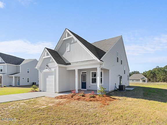 Welcome to this inviting home featuring a charming front covered porch, offering a warm welcome. Upon entering, you'll find yourself in the spacious living room, seamlessly connected to the dining area & kitchen combo, perfect for entertaining or gatherings. The kitchen boasts a walk-in pantry with wooden shelves & a convenient laundry room nearby. Soft-close drawers & sliding doors lead to the uncovered side patio, extending your living space outdoors. A half bath & coat closet add convenience on the main floor. The owner's suite is a retreat, complete with a dual sink vanity, walk-in shower, water closet, linen closet, & a walk-in closet. Enjoy direct access to the back covered patio from the owner's suite. Upstairs, discover a spacious guest room with a Jack & Jill bathroom featuring dual sinks, perfect for accommodating visitors. A smaller second guest room provides additional space for guests or as a home office. Ask your REALTOR® about incentives.