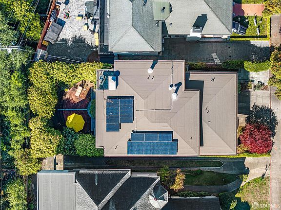 Built in 1950 and set against stunning Pacific Ocean views, this beautifully maintained mid-century modern home captures the spirit of the era's design, characterized by simplicity, functionality and integration with nature. Expansive windows and open, interconnected living spaces make colorful sunsets, ocean breezes, and beautiful landscapes an important part of daily life. Throughout the home, timeless architectural elements such as clean lines, geometric shapes, custom built-ins, hardwood floors and expansive floor-to-ceiling windows invite harmony and a feeling of peace and comfort. With extensively renovated systems, the home offers upgraded electrical and HVAC, a newer roof with copper gutters, and all copper plumbing. Keeping up with modern efficiency, there is a solar panel system, an EV charging station, in-ground irrigation, whole house sound and home security systems. You'll enjoy natural interplay from the inside out through the windows of the sunroom that overlook professionally landscaped gardens, and from the large family room that opens to the yard's charming brick patio. Situated on a prime view lot, the home is steps away from Terrace Green Park, West Portal shops, restaurants and transportation, great schools, Stonestown Galleria and Highways 280 and 101.