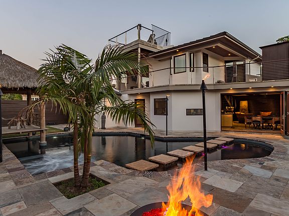 Ultra luxury resort style home located just a half block from one of Santa Barbara's best beaches. Completely remodeled in 2007, this home was designed for indoor/outdoor living with attention to detail and high end finishes throughout. All appliances and fixtures are top of the line from the Wolf and Sub zero built-ins to the remote control toilet, steam shower and Jacuzzi tub. Stainless steel, granite, wood and glass are complements to the two major water features, the water wall and pool. The backyard is home to a custom one of a kind pool with built-in swim lane, party size hot tub, floating palapa and built-in gas fire pit and tiki torches. Watch the sun rise and set from the ocean, island and mountain-view rooftop deck. This home is as cool and luxurious as just about any hotel suite in the world.