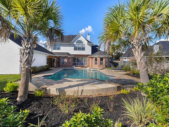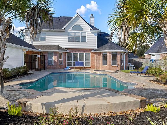 Bringing the wow factor! Elegant 4-bed, 3.5-bath home delivers the perfect blend of space & luxury complete with your own backyard oasis featuring a sparkling and newly resurfaced in ground pool & hot tub combo! Step inside to find soaring ceilings, elegant crown molding, and a bright and inviting atmosphere with tons of natural light. The spacious kitchen boasts granite countertops, abundant cabinetry, workspace island, 2 pantries and an open layout to the breakfast area and living room—ideal for entertaining. Upstairs, you’ll love the versatile bonus room perfect for a game room, media space, or second living area. The split floor plan offers privacy, with a large owner’s suite featuring a spa-like bath, double vanities, jetted soaking tub, and separate shower. Beautiful, functional built-ins throughout add character and storage. Prime convenient location 2.7 miles to Lumberton Middle and High, this home checks every box—inside and out! Video tour: https://youtu.be/DYDTh5dpvmQ