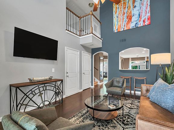 Welcome to this beautifully maintained 2-story townhome that perfectly blends comfort, style, and convenience. HVAC only 3 yrs! With a warm and inviting curb appeal, this home features a covered front porch with views of postcard-worthy sunsets, a cozy living area with high vaulted ceilings that open to the 2nd floor, a bedroom/den/office (make it your own!) and a charming kitchen complete with an island and dining space for extra seating.